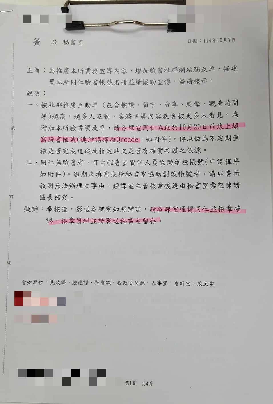 發公文要求公務員「交出臉書帳號」列冊管理 高市府:區長處置失當調離職務